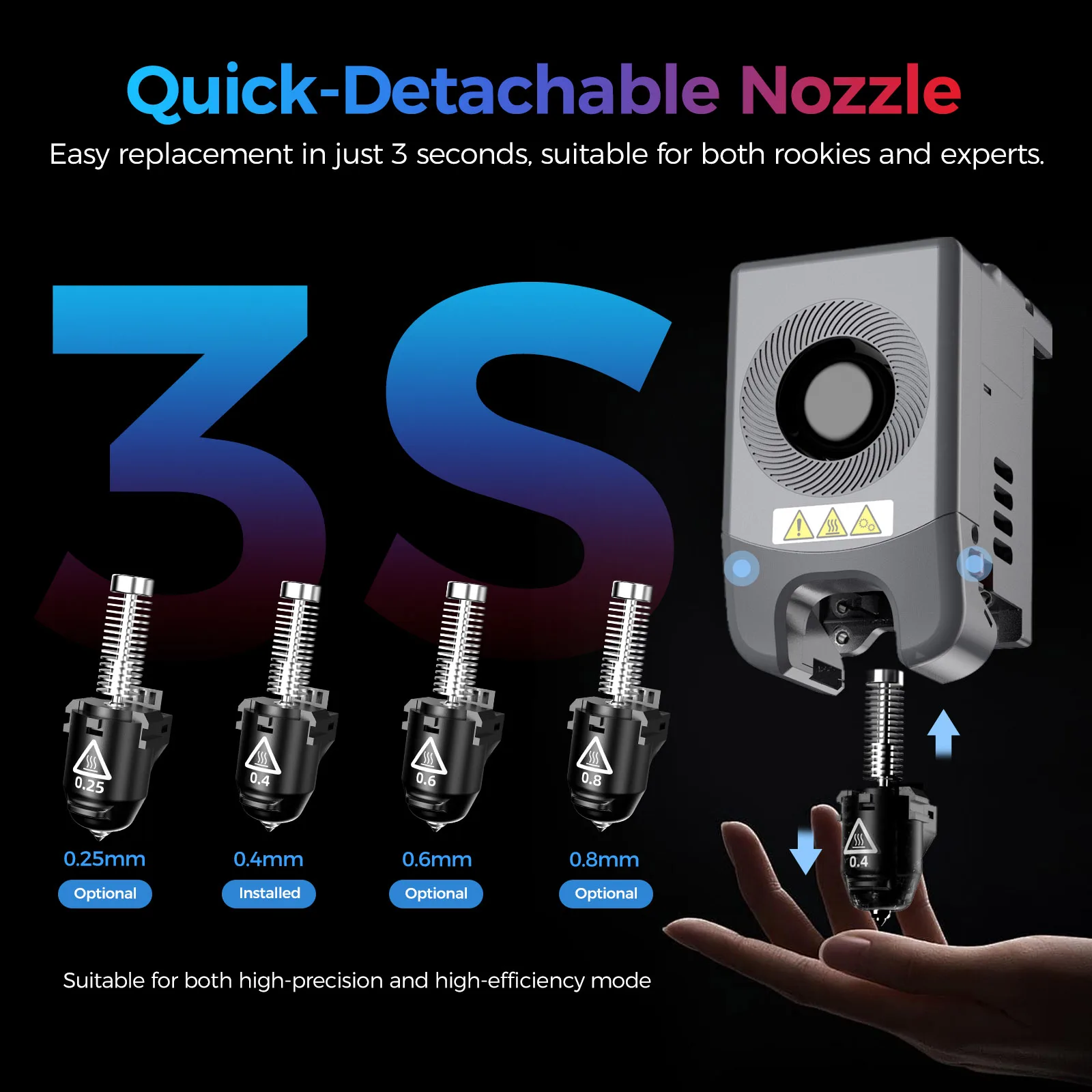 Nozzle Diameter: 0.25mm/0.4mm/0.6mm/0.8mm
