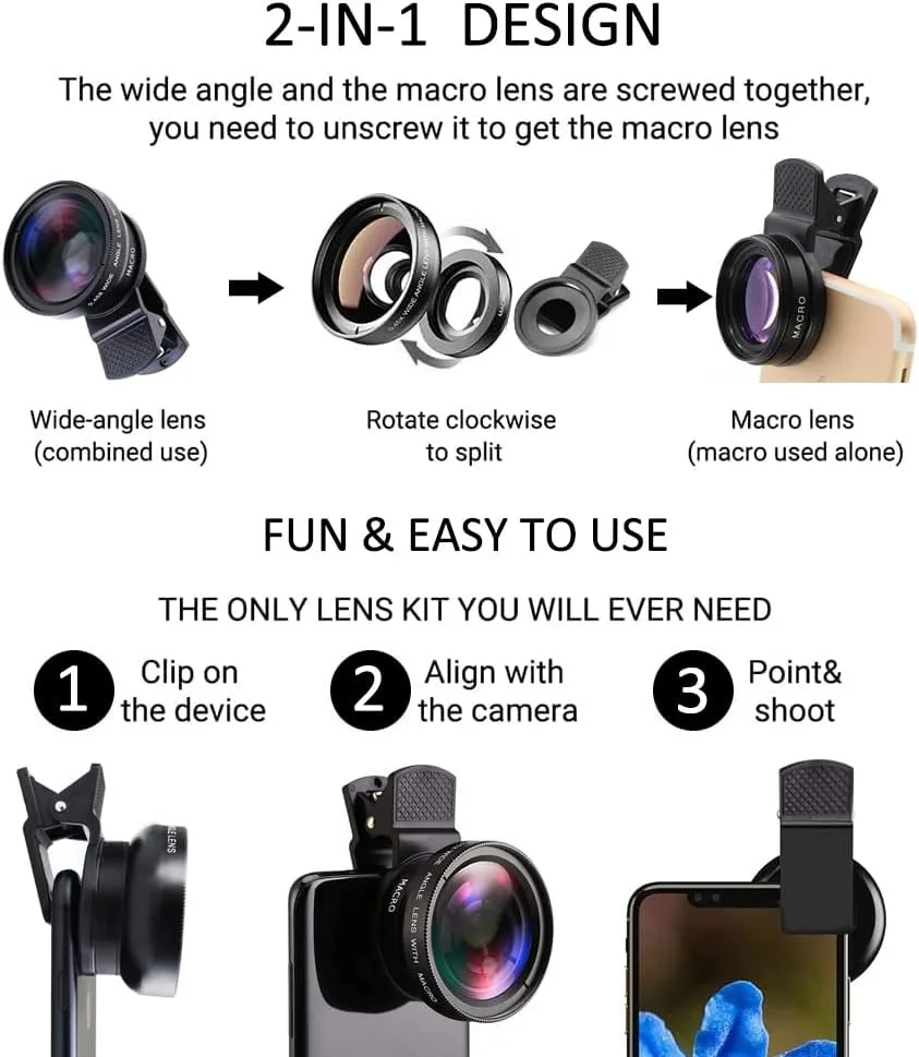 Universal Clip 2-in-1 Lens 37mm for cell phones